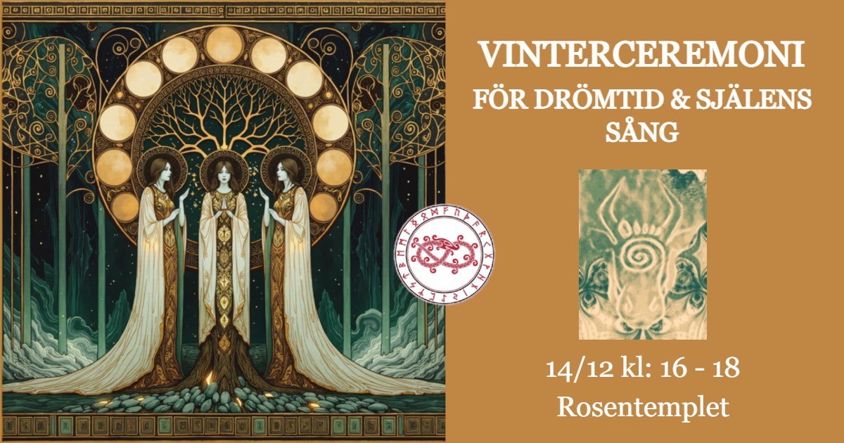 Rosentemplet bjuder in till en vinterceremoni där vi träder in i vilan, vänder oss inåt och lyssnar efter det uråldriga nynnandet, poesin och stillhetens viskningar. Vi tillåter oss att sjunka in i varandet, i luftens element och upplevelsen av det formlösa – att väva oss in sig i drömtiden och öppna upp för själens sång. Vi reser ceremoniellt och möter de uråldriga gudinnorna, Audhumbla och Nornorna. Du får med dig din årsruna inför nästa cykel. Varmt välkommen!